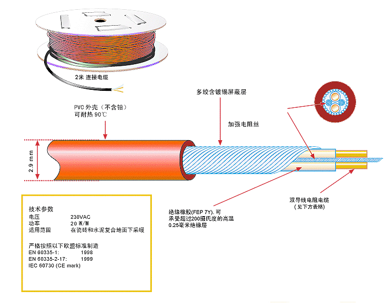 環(huán)瑞最新研發(fā)5.0±10%毫米直徑的雙導(dǎo)電地?zé)峋€-新型發(fā)熱電纜,可滿足5毫米-100毫米不同覆蓋厚度設(shè)計(jì)